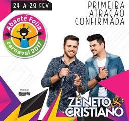• Abaeté Folia 2017 anuncia Zé Neto & Cristiano como sua primeira atração